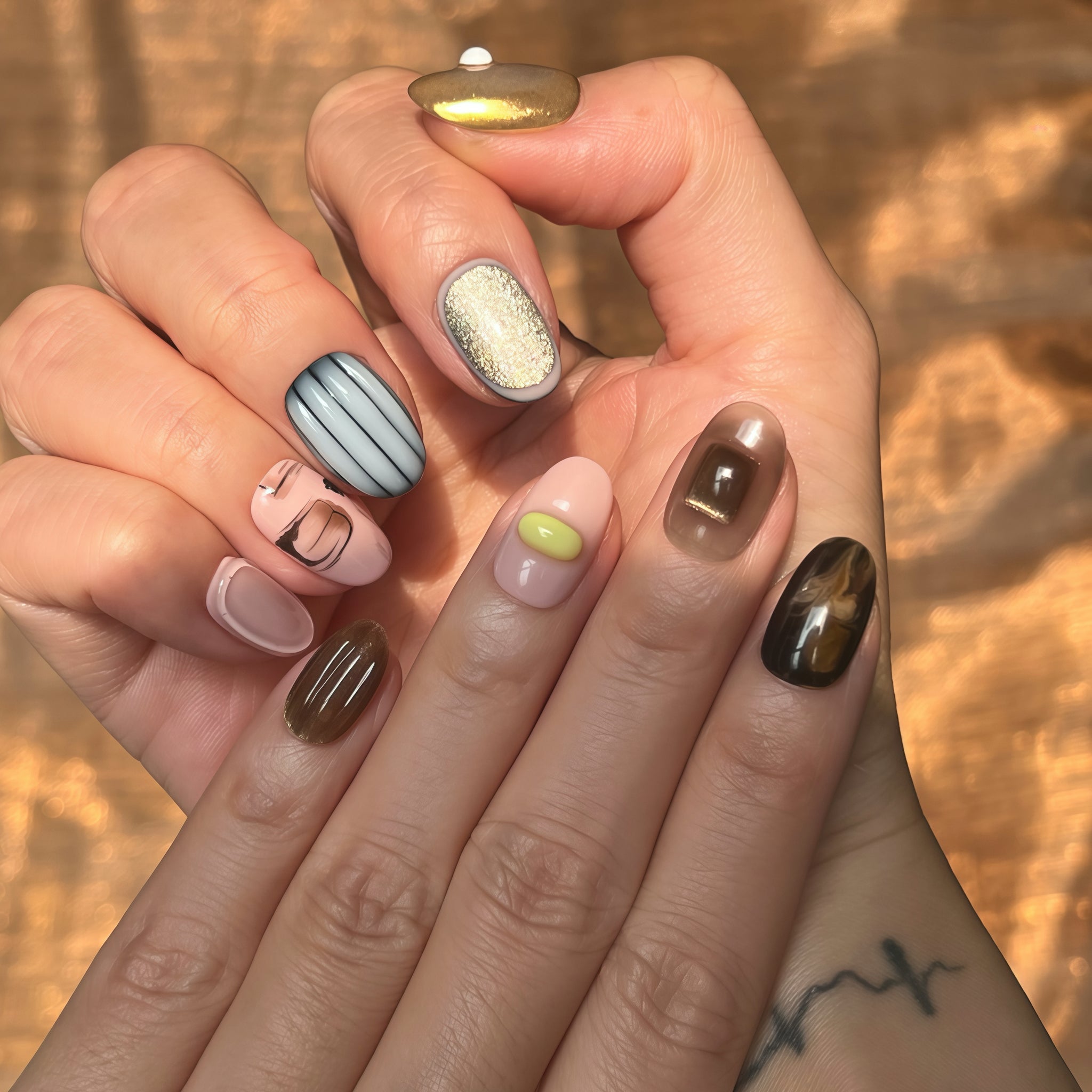 A sharp mix of deep black, soft grey, and warm coffee brown—finished with a sculpted...